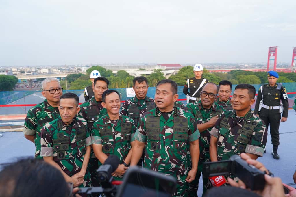 INFOTAJAM.COM_Pangdam II/Sriwijaya Mayjen TNI Ujang Darwis, M.D.A., bersama Ketua Persit KCK PD II/Sriwijaya Ny. Desi Ujang Darwis, mendampingi Kepala Staf Angkatan Darat (Kasad) Jenderal TNI Maruli Simanjuntak, M.Sc., dan Ketua Umum Persit Kartika Chandra Kirana Ny. Uli Simanjuntak, dalam kegiatan Topping Off Ceremony pembangunan Poliklinik Terpadu MCU dan Rawat Inap Eksekutif Rumah Sakit TK. II dr. AK Gani, yang berlokasi di Jalan dr. AK Gani No. 1, Ilir Timur I, Kota Palembang, Rabu (05/11/2025)._Setibanya di Rumah Sakit TK. II dr. AK Gani, Kasad beserta rombongan disambut dengan laporan oleh Kepala Rumah Sakit TK. II dr. AK Gani, Kolonel Ckm dr. Nirwan Arief, Sp.M., M.H.Kes., MA.R.S., yang kemudian dilanjutkan dengan penyambutan resmi oleh para Pejabat Utama Kodam II/Sriwijaya. Kegiatan berlangsung dengan penuh khidmat dan diwarnai suasana kebersamaan antara unsur TNI AD, tenaga medis, dan jajaran Persit Kartika Chandra Kirana.