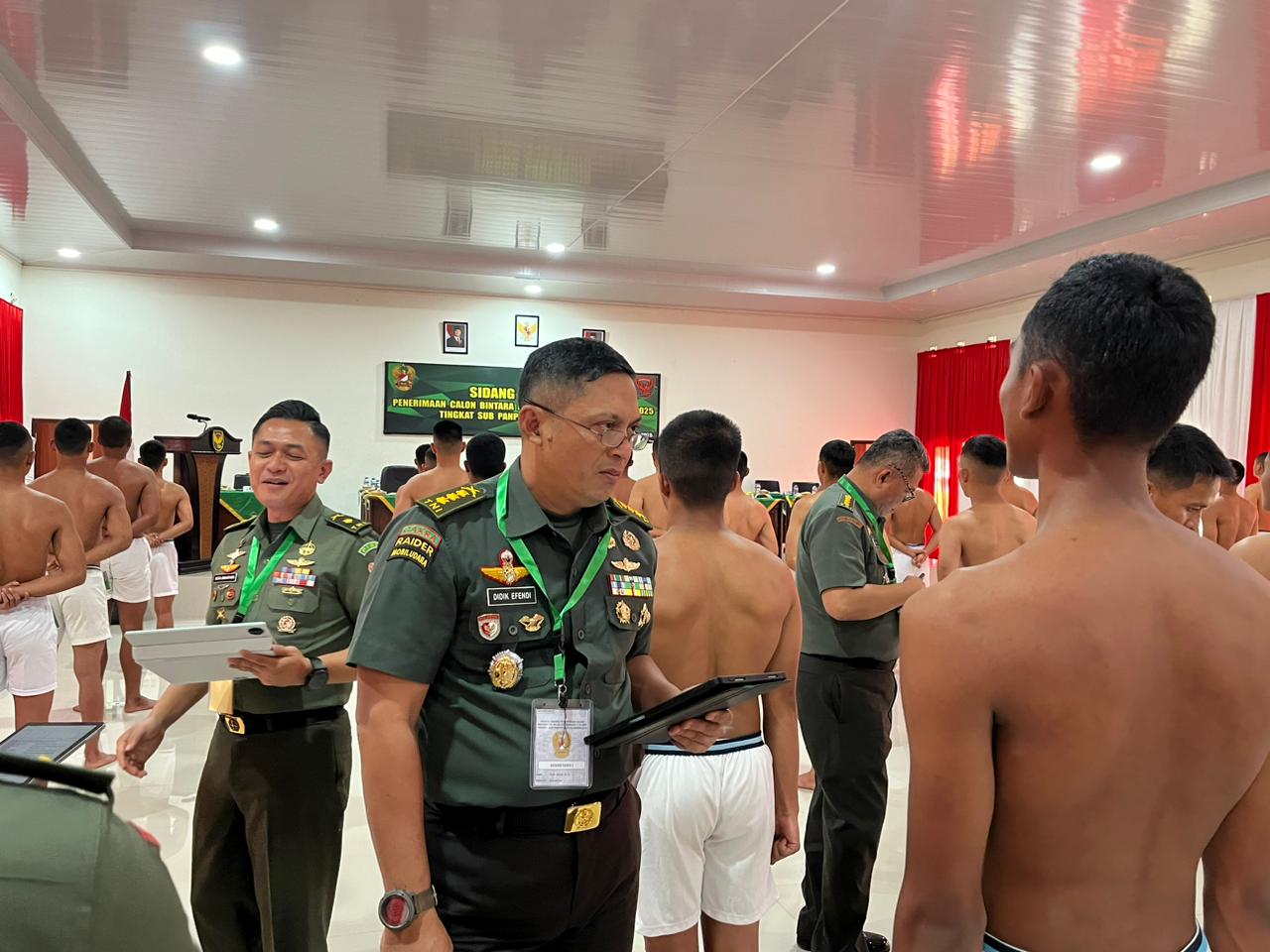 INFOTAJAM.COM_Sidang Pantukhir Penerimaan Calon Bintara PK Pria TNI AD TA 2025 Tingkat Sub Panpus Kodam II/Sriwijaya berlangsung di Pendopoan Secata Rindam II/Sriwijaya, Pagar Agung, Kecamatan Lahat, Kabupaten Lahat, pada Kamis (6/10/2025).Sidang ini dipimpin oleh Wakil Ketua Tim Sidang, Kolonel Inf Teadi Aulia Mula Uji, S.E., M.Han., didampingi oleh sejumlah pejabat penting dari berbagai bidang pemeriksaan, diantaranya Kolonel Inf Didik Efendi, S.I.P. selaku Sekretaris I, dan Letkol Inf Matin Algiffari, S.H., sebagai Sekretaris II.